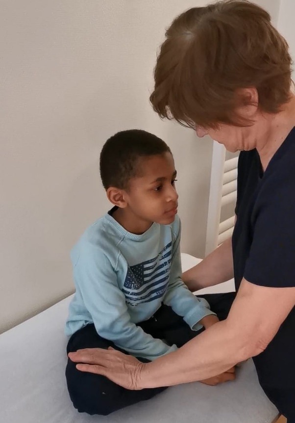(6 mois après l’étude) : » Le plus spectaculaire est sa posture. Il avait tendance à être toujours avachi, il avait besoin de s’appuyer sur quelque chose ou quelqu’un dès qu’il s’asseyait. A la suite du traitement il s’est vraiment redressé il a arrêté de s’allonger par terre en classe. Son corps s’est aminci ; dans son travail, cela l’a aidé à être plus présent et à mieux se concentrer. Au niveau musculaire, il y a eu un réel changement. Maintenant j’ai du mal à le rattraper à vélo et la grande montée de l’école n’est plus un problème pour lui. Je pense aussi que le traitement l’a beaucoup aidé à pouvoir s’adapter à l’école et à pouvoir suivre ses professeurs. Il est aussi présent avec nous. «