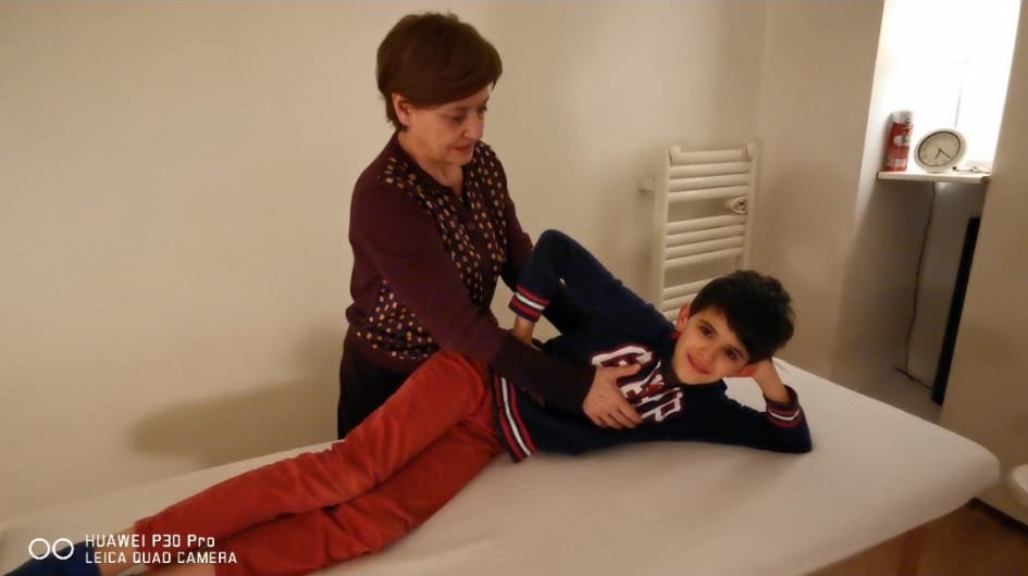 (6 mois après l’étude) : » Le plus spectaculaire est sa posture. Il avait tendance à être toujours avachi, il avait besoin de s’appuyer sur quelque chose ou quelqu’un dès qu’il s’asseyait. A la suite du traitement il s’est vraiment redressé il a arrêté de s’allonger par terre en classe. Son corps s’est aminci ; dans son travail, cela l’a aidé à être plus présent et à mieux se concentrer. Au niveau musculaire, il y a eu un réel changement. Maintenant j’ai du mal à le rattraper à vélo et la grande montée de l’école n’est plus un problème pour lui. Je pense aussi que le traitement l’a beaucoup aidé à pouvoir s’adapter à l’école et à pouvoir suivre ses professeurs. Il est aussi présent avec nous. «